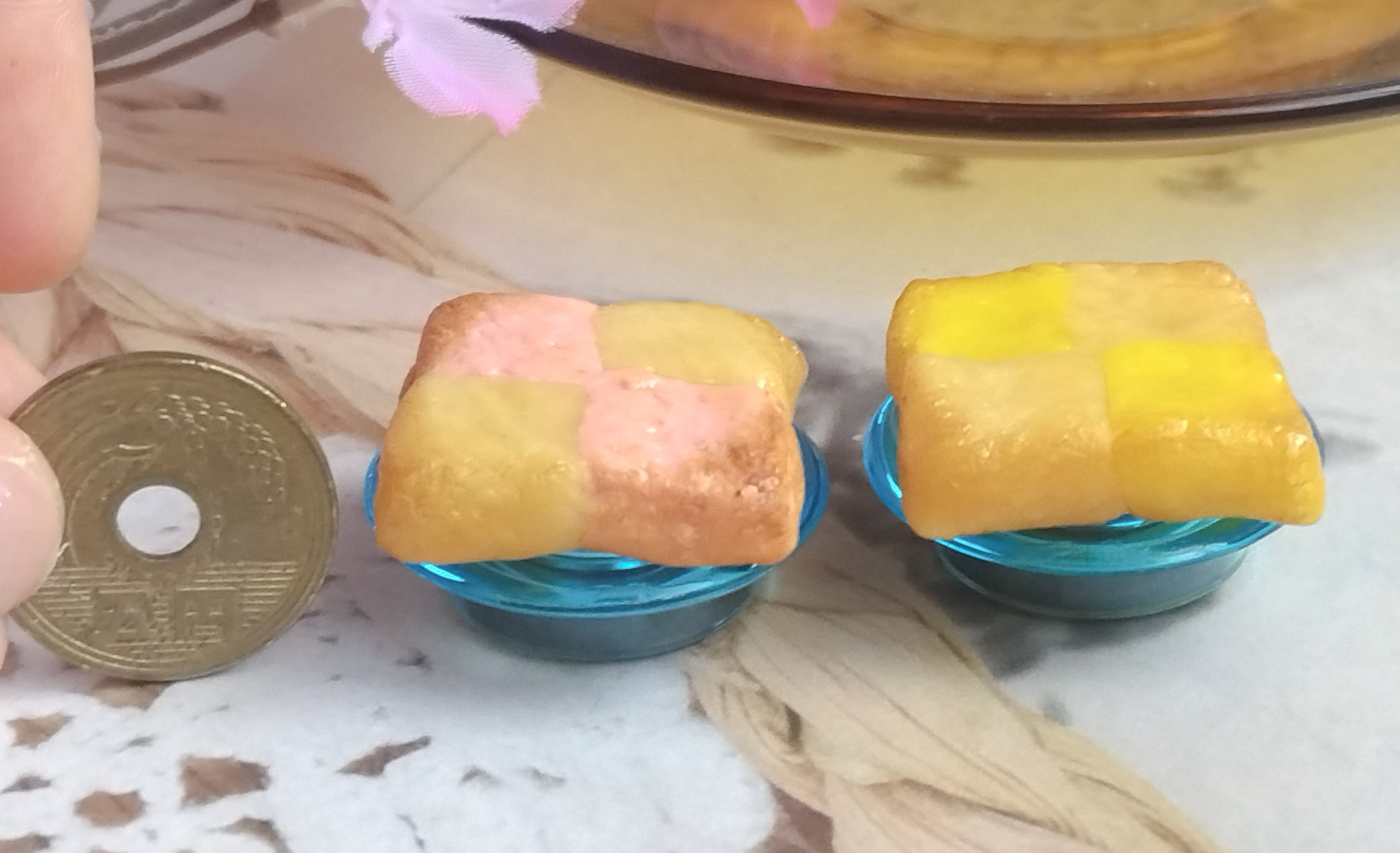 軽量樹脂粘土(ハーティ)、マグネット、アクリル絵の具、接着剤、防水材ニスで加工済み。